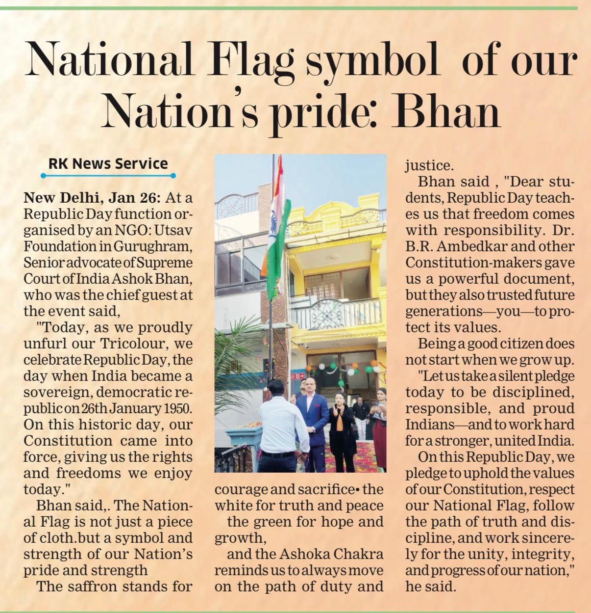 110. Republic Day celebrations at Utsav Foundation were graced by the presence of our Chief Guest, Ashok Singh Bhan(2026).